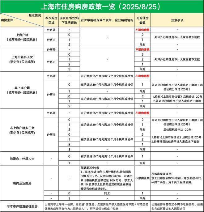 结合8月25日发布的新政,上海链家已将限购、税费、公积金贷款、商业贷款等关键政策,梳理成清晰易懂的图表,助您快速掌握最新购房要点。