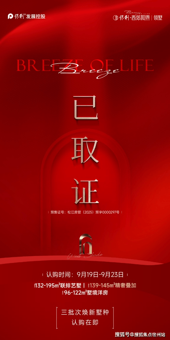 最新消息,保利·西郊和煦|领墅三批次房源已正式取证,9月19日正式开启认购通道!一房一价表已公示,本批次共加推103席臻品房源,其中建面约139-145㎡叠加新墅种,超高质价比764W起享全屋精装交付;压轴爆款建面约122㎡墅境洋房,总价仅需514W起,配享超1100㎡下沉式圈层会所,把握最后上车机会!抢位良机,错过再无!