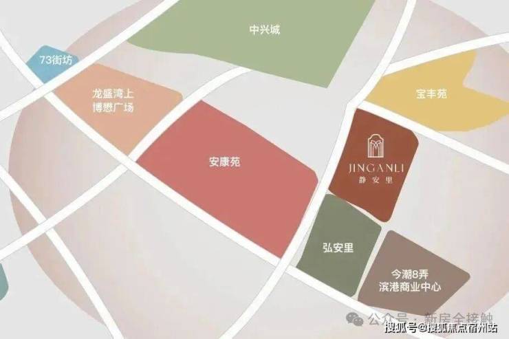 东邻今潮8弄(巴金图书馆、滨港商业中心已绽放)、西接安康苑&龙盛湾上(规划超甲办公/星级酒店/石库门商业),南望弘安里传世石库门大宅。