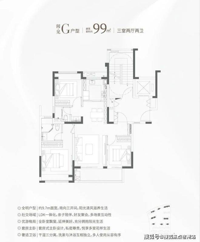 G户型:阅·见 建筑面积约101㎡,三房两厅两卫