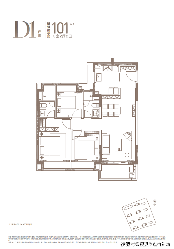 项目还有一个建面约101㎡边套户型,和100㎡设计大同小异