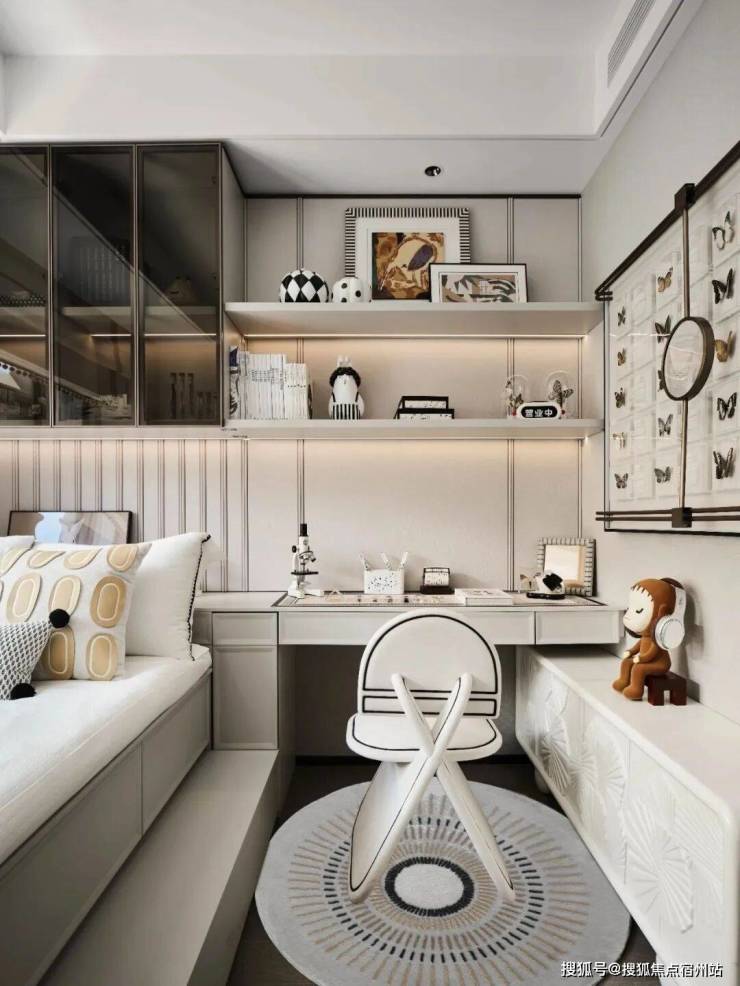 儿童房设计同样延续黑白色调,在满足孩童当下的生活、学习与玩乐需求上,在活动家具的选型和空间配饰上增添了几分童趣,兼具实用功能与美学艺术。