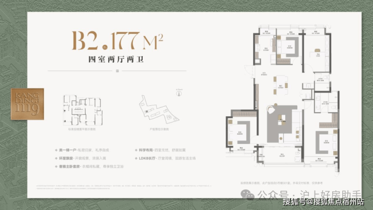 建筑面积约177㎡四房户型,6重采光面,室室皆阳,是对于预算更高的客户,招商给出的又一全新选择。