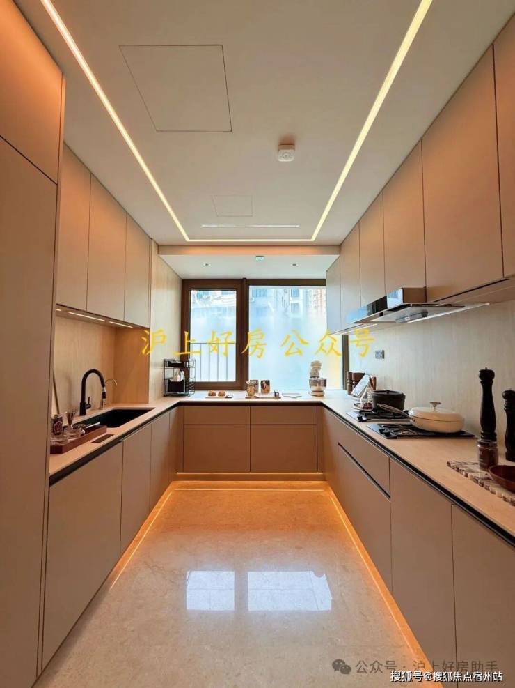 宽厨房与一体化共享空间:与客餐厅等宽的厨房,解决了豪宅往往觉得厨房过于局促的问题。这样的厨房,不再仅仅是功能化空间,而是与岛台一起组合成家庭厨师长的个人秀场。