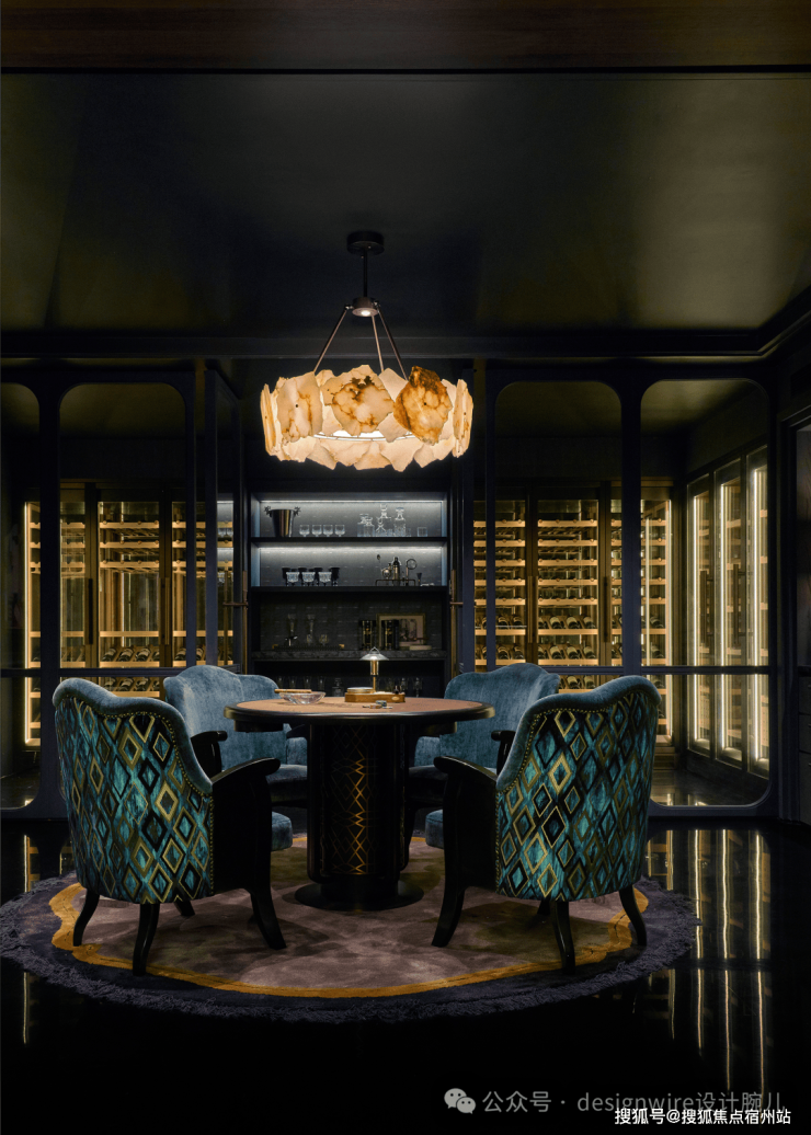 金棕色调之下,是豁朗的社交主场气质。在功能上布置了藏酒窖和雪茄吧,丰富的空间层次,成就尊享的圈层聚会。