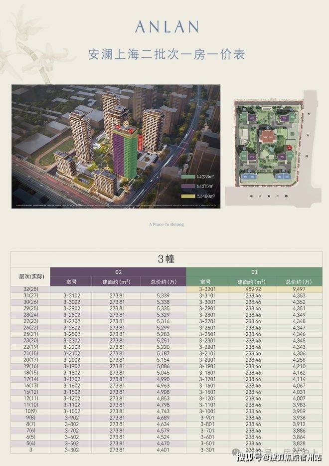 据悉,安澜上海此次二批次加推3号楼,共计51套房源,将推主力建面约238/275㎡大平层,均价179100元/㎡,正在认购!