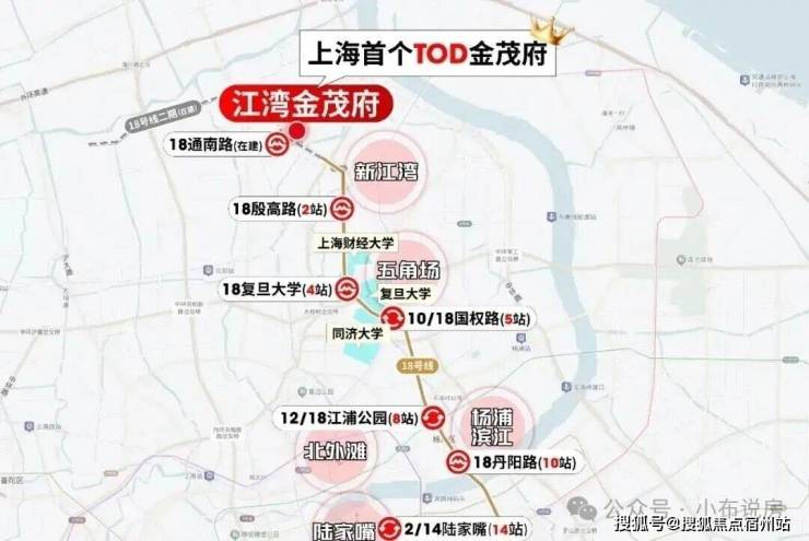 江湾金茂府是上海第一个TOD金茂府项目,且家门口地铁站 轨交18号线二期(在建,预计年底通车)与 3号线双轨交汇!