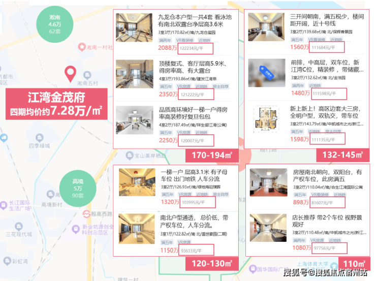 宝山东部片区上一次供应还要追溯到2015年的泰禾红御和盛世宝邸, 几近10年断供 ,这两盘也是目前区域标杆,前者挂牌近9万/㎡,后者7万+/㎡。五角场同样如此,近10年断供;而新江湾次新房龄普遍15年+,挂牌价10万+/㎡,总价很高。