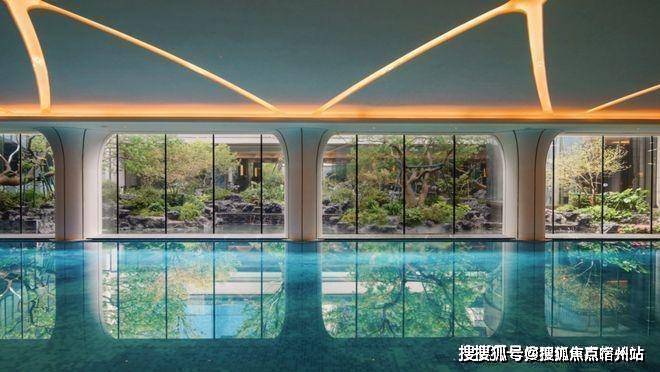 约500㎡艺术馆般泳池,天花、墙面以现代摩登的手法,✅招商臻境售楼处电话:400-8824-258✅✅抽取上海海派建筑造型为元素,打造充满静奢韵律的造型,搭配泳道尽端景泰蓝奢石背景墙,勾勒出一处臻享静美的精神之所。✅招商臻境售楼处电话:400-8824-258✅✅