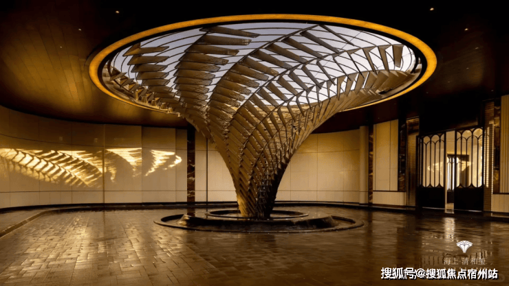奢材精工:门庭外立面采用弧形米色石材+典藏级老虎玉大理石,下沉式庭院选用土耳其进口老虎玉,耗时60天手工打磨;迎宾树木选用树龄超60年的紫薇,细节处尽显奢华与用心。