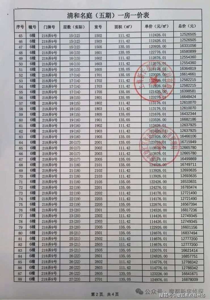 最新一房一价表公示 :