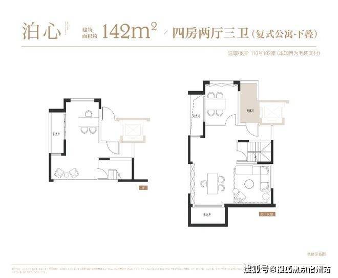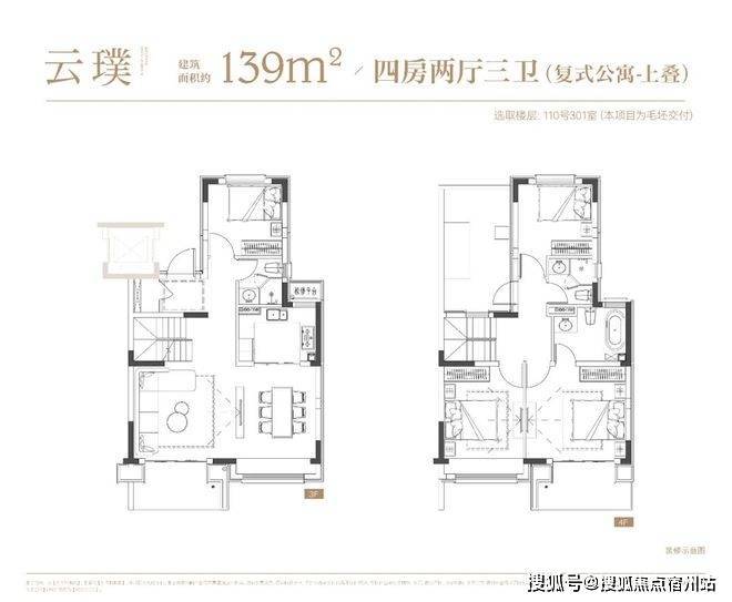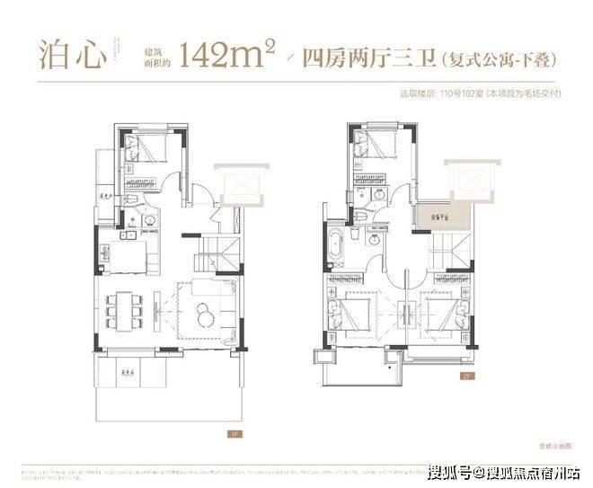项目叠墅户型有建面约142㎡下叠,✅✅大华梧桐院售楼处电话:400 - 882 - 4258✅✅建面约139㎡上叠。