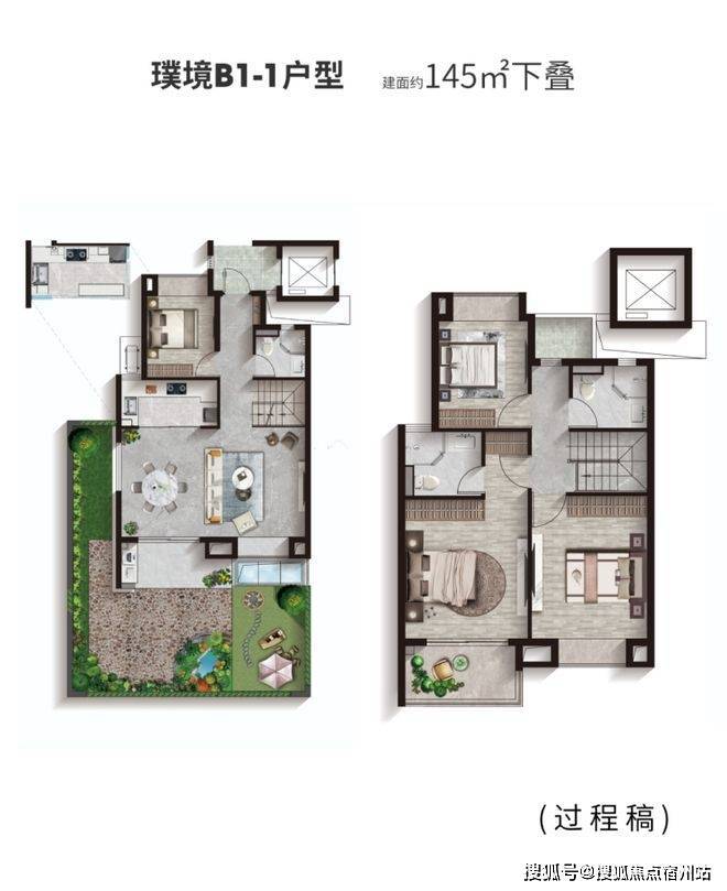叠加别墅面积123至145平方米,联排别墅为182至202平方米,激发更多生活灵感。下层地下室可改造成家庭影院、收藏室或工作空间;星空露台在夏夜适合观星和与朋友聚会。上层坡屋面阁楼,可成为孩子的梦幻乐园,或作为主人的安静书房。