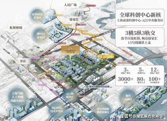 未来将以科创产业为引擎, 入驻100+五百强企业,引进80万全球高智人才,建设商业休闲、优质教育、文化体育、城市公园等复合公共配套,筑就创新、人文、生态高度融合的中央服务区,领潮未来都市理想生活,为闵行展开一幅无限想象的蓝图。