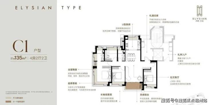 建面约135m²户型, 在1100万级四房中,不仅拥有LDKB超宽客餐厅还拥有极致改善尺度!