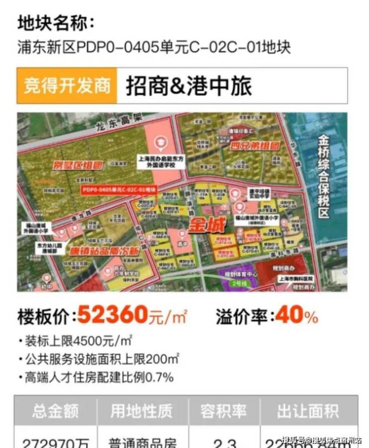 土拍重磅新闻——7月25日上海六批次土拍结束,唐镇地块再次赚足市场眼球!经过62轮 鏖战,最终由 招商&港中旅 以总价 27.3 亿,楼面价 5.24万 元/m²夺得!溢价率突破 40% !!!未来售价预计将突破 9万/m² ,已迎来价值爆发窗口期!