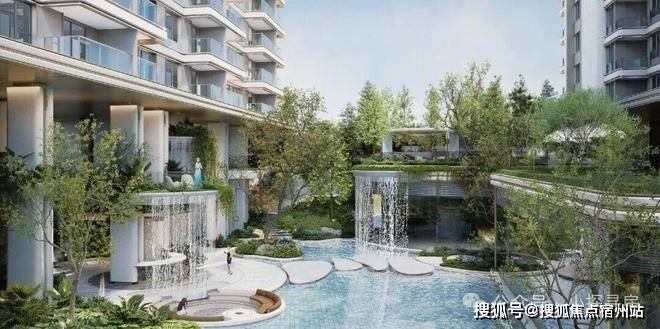 摒弃常规项目的平面化绿化,西派云间以“折叠手法” 打造立体叠瀑森屿。约10米高差的坡地之上,水流从云端倾泻而下,形成层次分明的叠瀑景观;