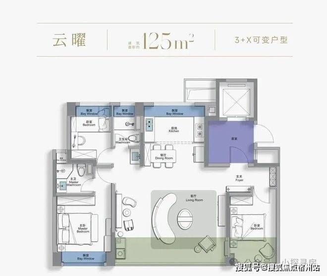 其四,主卧270°景观飘窗(仅5#、10#楼边套),采用大尺寸玻璃,晨起可观朝阳,夜晚可赏繁星,独立衣帽间与全明双台盆主卫,更显豪宅级尊崇。