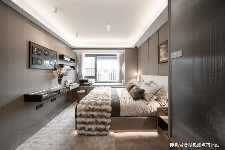 主卧套房设计,带独立卫生间 + 转角飘窗,私密舒适;