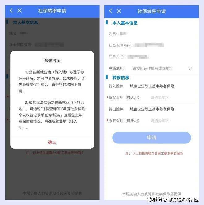 第三步:录入申请人的基本信息和转移信息等,然后点击“申请”,转移接续的申请就完成啦。