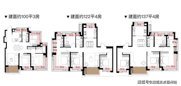 每个户型至少6个飘窗,边套更是约270°转角瞰景。