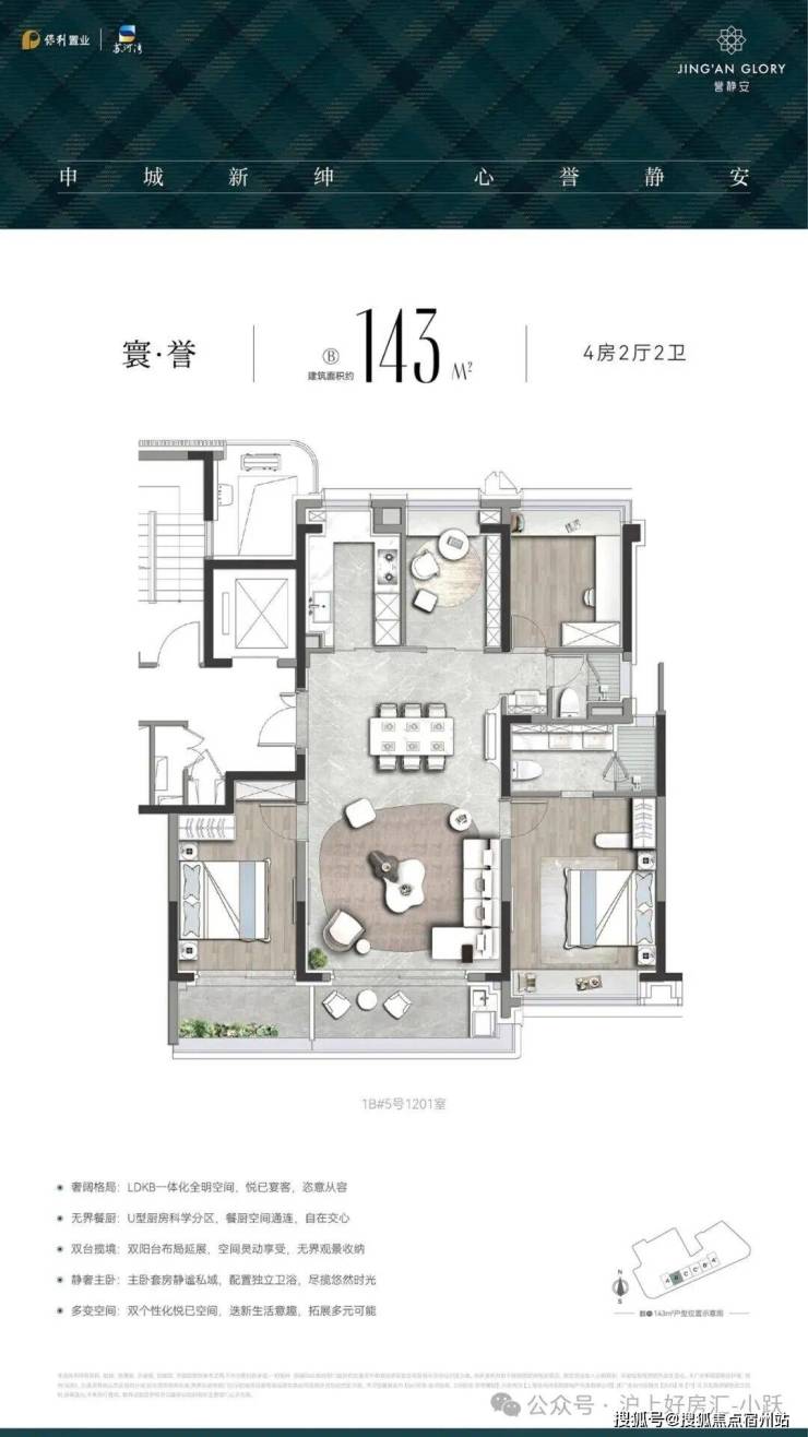 誉静安建面约143㎡户型,是2000万级买到内环内4房的仅有机会,一步到位终极改善,还在各个层面实现居住品质的跃迁,这样的房子买起来能不舒心吗?