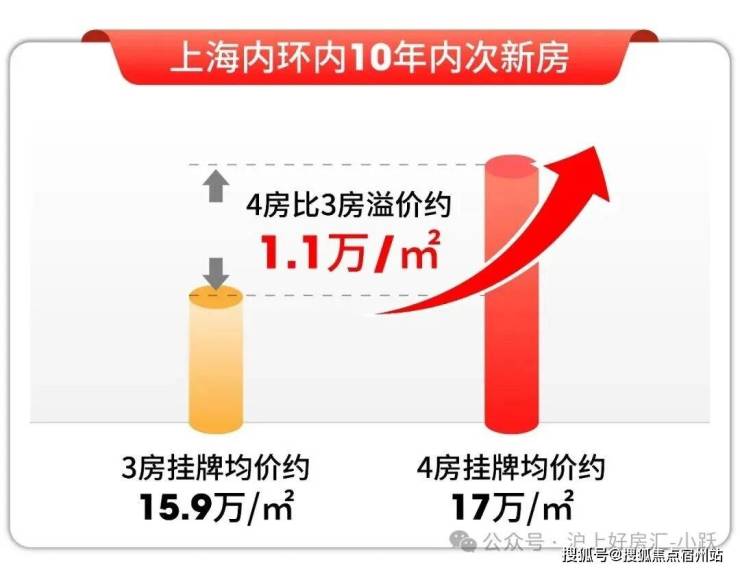 其二、珍稀必然面临高溢价,当前内环内次新3房挂牌均价约15.9万,4房则要17万,溢价1.1万。不得不承认,四房才是当前内环内的硬通货!