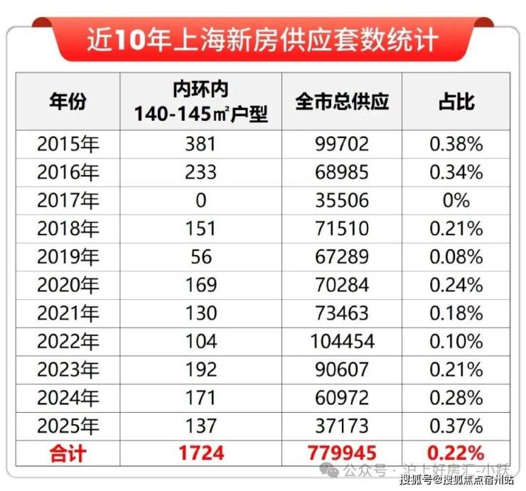 据网上房地产数据显示,近10年整个内环内每年入市的140㎡+的4房户型基本都是百余来套,占比总池子约千分之二,稀缺性可见一斑!