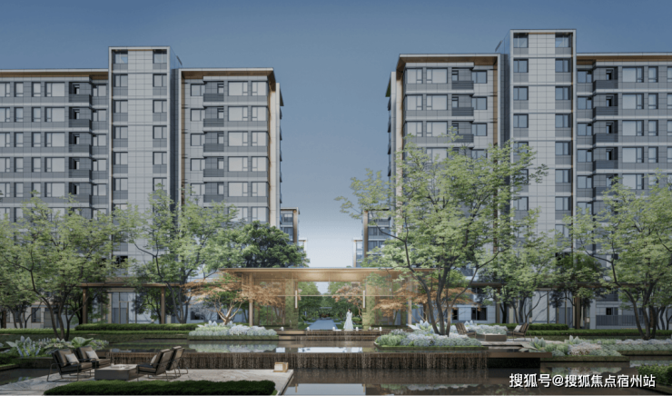 步入 庭院,精致会客厅搭配匆匆绿意和层叠水院,颇具层次感的美景让归家的业主瞬间放松,卸下一天的疲惫,也深度诠释了项目 归家即是度假开始的设计理念!