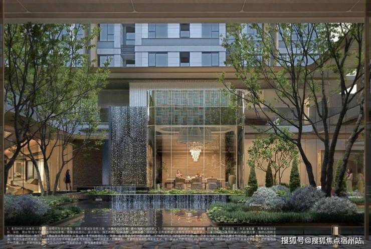 于是你可以看到,结合建筑界面打造城市精品酒店式的入口广场,即 精品街区,以及流觞曲水的 觅隐叠溪,将你从城市拉回自然。