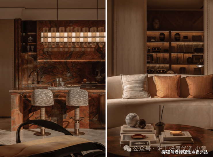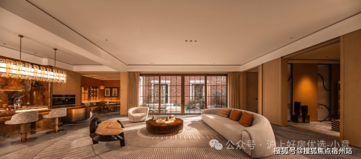 公区设计,巧妙融入百乐门印象、沪西电影院等文化元素,将过去记忆植入场景。嘉佩乐酒店式门庭、琉璃光廊式车库、海派人文哲思花园,以“深度酒店化”营造归家艺术之旅。