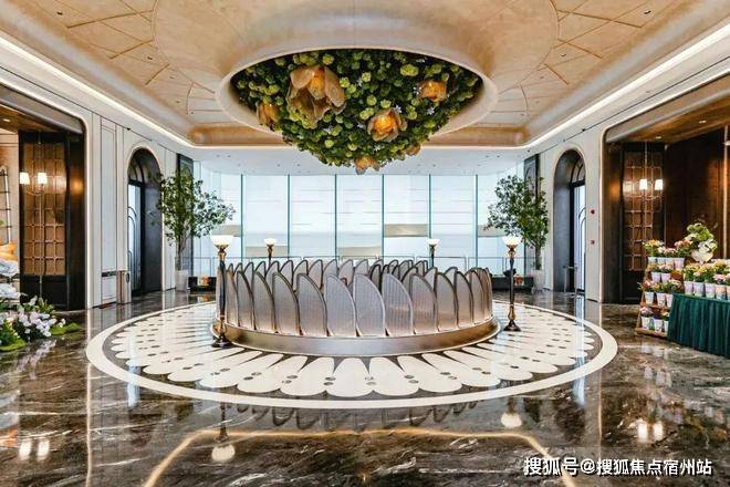 进门之后,恍若走进一幅立体绽放的画卷。地面采用了石材拼花,纹理如行云流水般舒展,在光影交错间勾勒出低调的奢华。