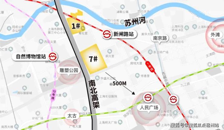 绝对的黄金地段,其中1号地块临苏州河,离1号线新闸路站也很近。