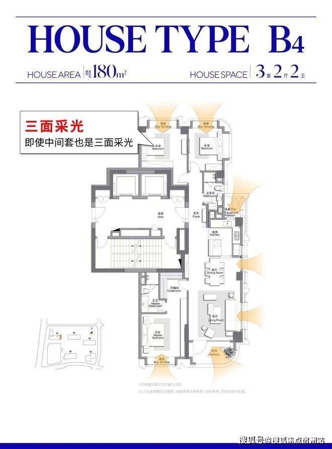 ✔三面采光+约270°观景,无论边套还是中间套,均做到三面采光,得益于这个户型单元位于小区内部优越位置,可看内部高线公园和商业的核心景观;约270°弧形观景阳台将城市天际线尽收眼底。