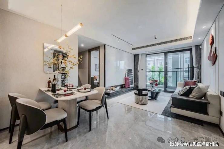 客餐厅的颜值超高,地砖、墙布都在交付标准里,整体风格更为统一,将好看+好用发挥到了极致!