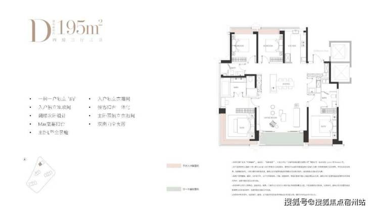 建面约195㎡4房: