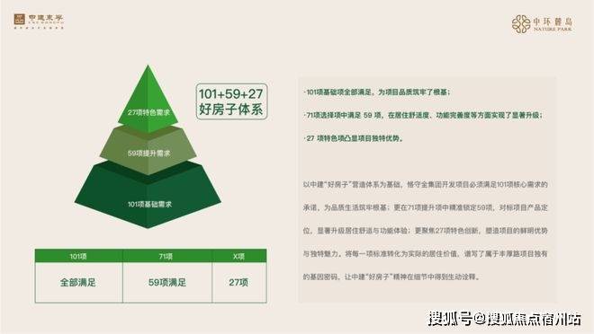 好房子Joylife体系作为中建东孚的重要产品内核,通过四大维度系统化提升居住品质。Joylife价值体系以101项基础项全部满足为核心,筑牢项目品质;在71项选择项中精准实现59项,显著升级居住舒适度与功能完善度;27项特色项则凸显了中环麓岛的独特优势与创新魅力。