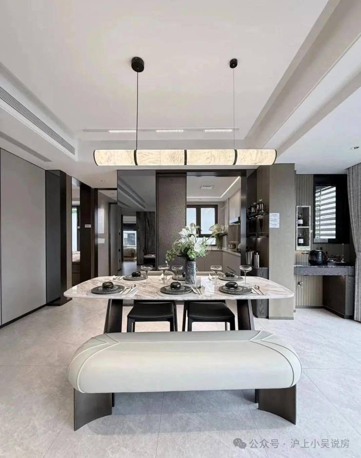 客餐厅厨一体化+大尺度观景阳台,整个公区几乎没有面积浪费,营造的空间感和尺度感远超同价位其他竞品! 华发海上都荟售楼处电话:400-8894-638