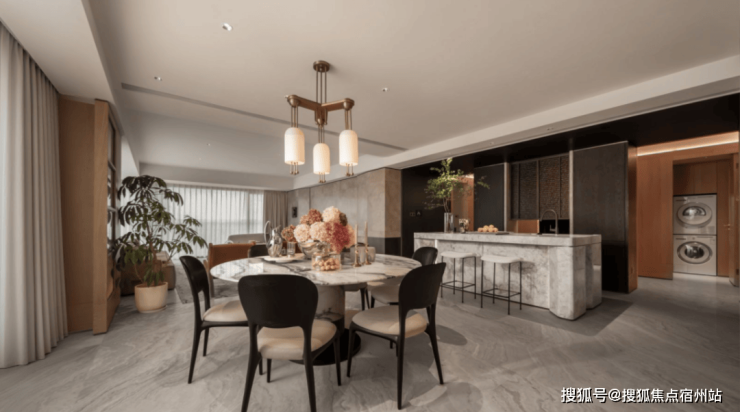 通过独立空间和专业设备,让家务变得高效轻松。其中,独立家政间,配备洗烘一体机、洗衣池、储物柜、操作台等 , 将 家务动线与生活动线分离 开来,各不打扰,井然有序。