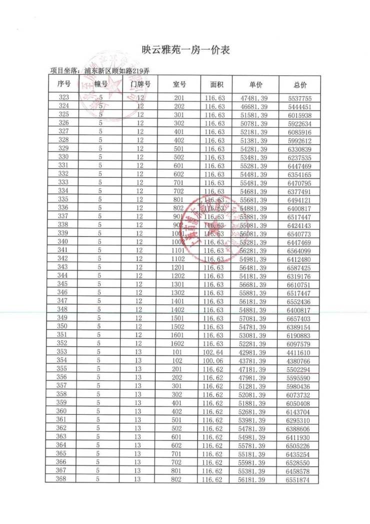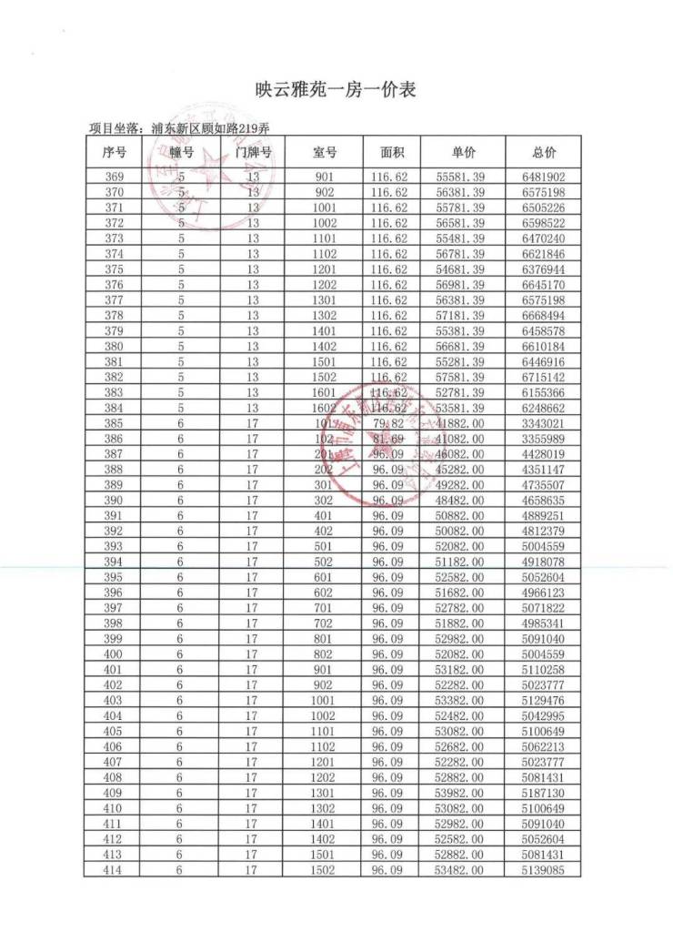 一房一价表