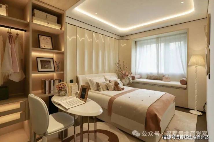 主卧套房配备步入式独立衣帽间,延展的飘窗,将“观景视野”与“生活场景”深度融合,是居者难得的“私享精神角落”,彰显高端居住质感;