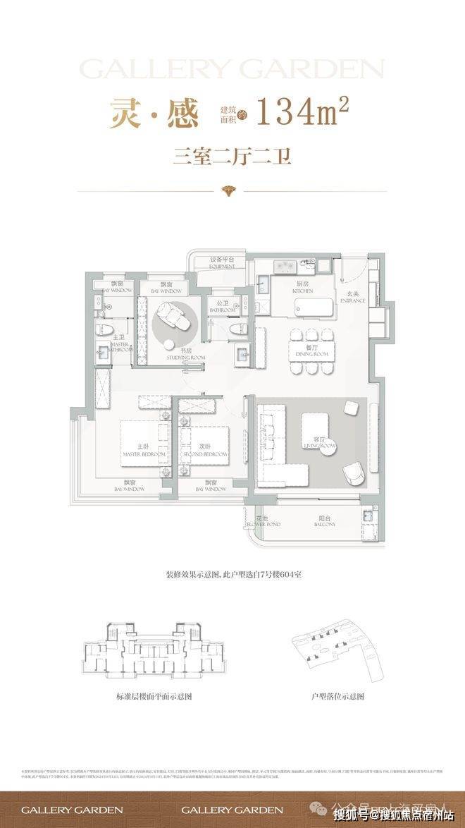 建面约134㎡3房2厅2卫, 主力总价约1500-1700万,户型设计在上一个户型的基础上将各功能间尺度升级的同时,也做了一些更人性化的迭新。