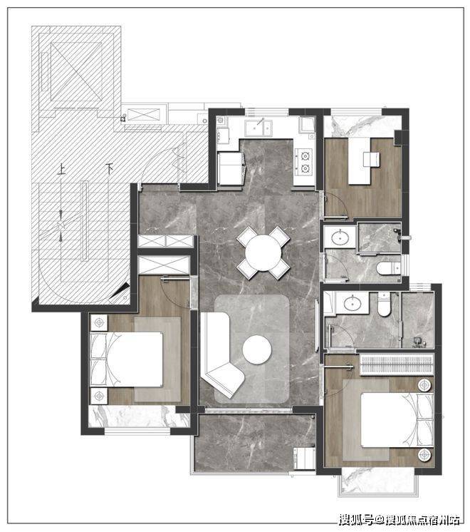 建筑面积约100㎡三房两厅两卫,构筑老、中、青三代人美好生活蓝图。独立玄关,方便收纳。