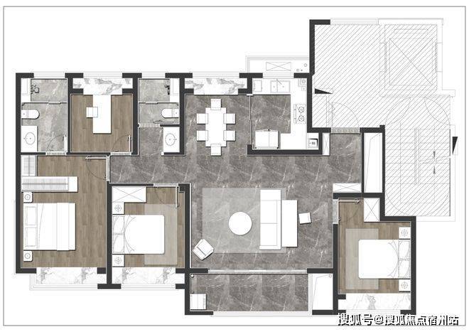 3、南向主卧打造了带衣帽间的酒店式套房,舒适感和品质感双重加持。