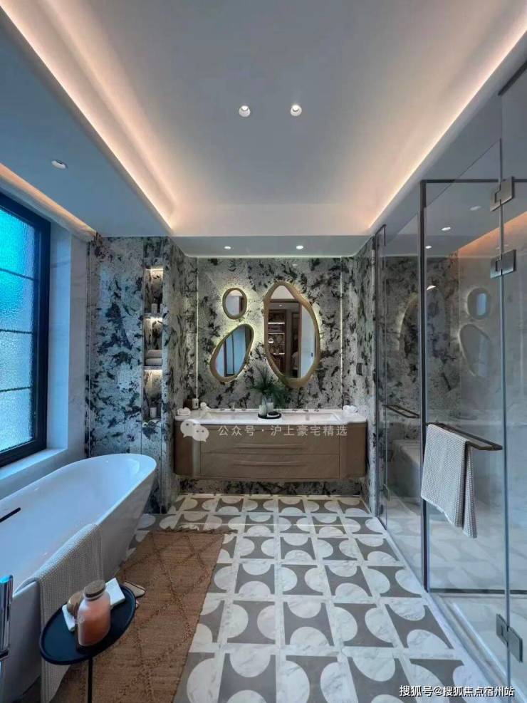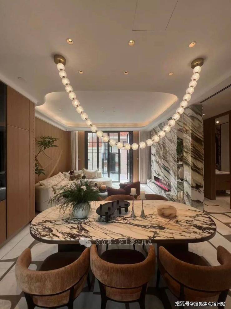 当然,室内更超乎想象。除了在选材上择取了高贵高质的石材、皮革影木等高档材质外,制作工艺才是真正的品质表现。从无限连纹地砖铺设到花瓣拼式的地板效果,以及香格里拉翡翠水刀拼花的背景墙面,整个空间展示的不仅仅是品质,更是审美,接近于艺术的审美表达。