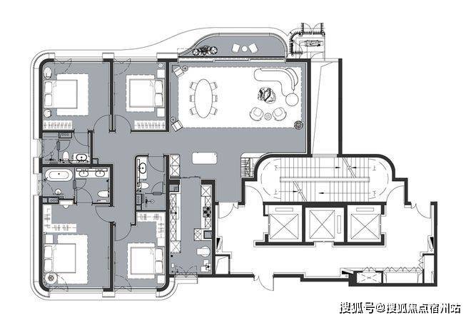 约388㎡大平层,三梯两户,尽显尊贵: