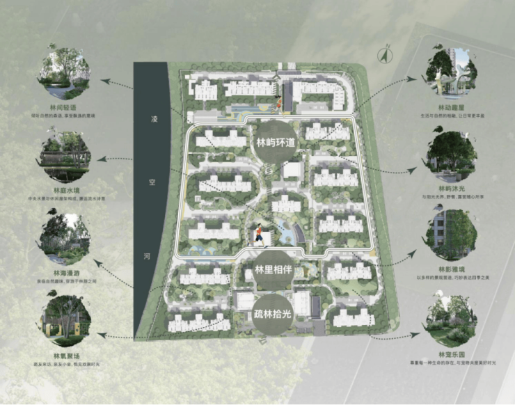 疏林时光,自然都市风尚花园丨林里相伴,社区邻里互动中心丨林庭水境,社交生活休闲会客丨林屿环道,社区健康生活跑道