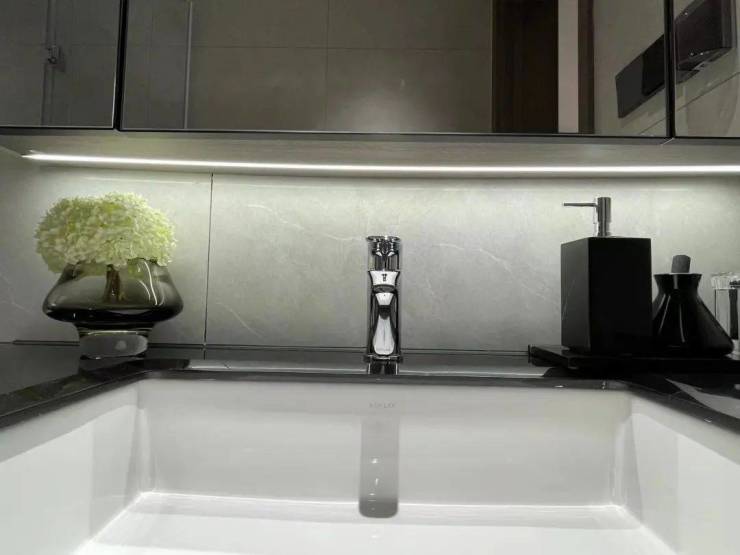 卫生间镜柜内部插座面板,让电动牙刷、冲牙器、电动剃须刀众多设备内置,保证美观度等等。