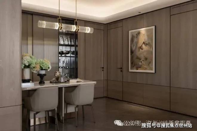 与常规新房室内没有门与墙的生硬拼凑感不同,江湾金茂府通过大量木饰面、隐藏门等细节,形成统一的设计语言,色彩与材质搭配协调统一,尽显整体美感!