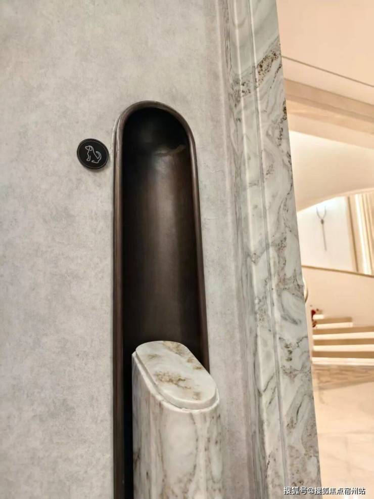 豪宅业主对私密性要求高,洋房做到区域唯一「类一梯一户+全明电梯厅」 ,还定制 法式奢石电梯门套 ,并引入罕见的 立柱式梯控、宠物电梯按钮,豪宅质感拉满。
